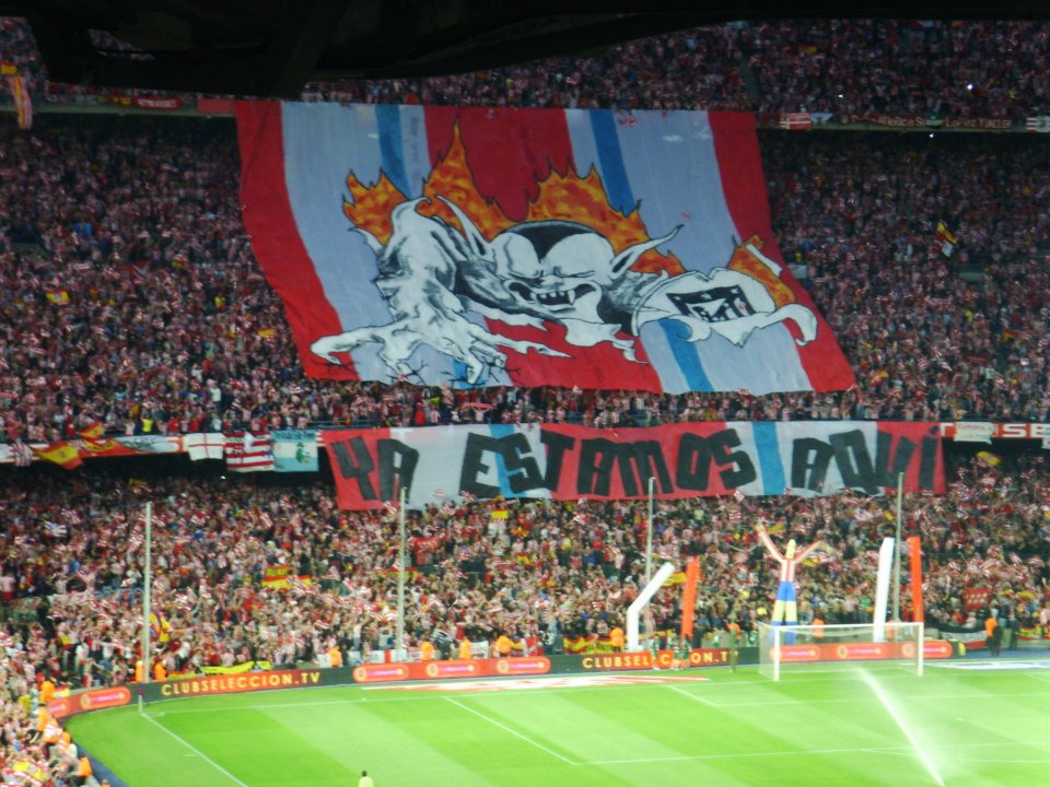 "A por ellos, solo son 11 gallinas" ou "Mangeons-les, ce sont seulement 11 poulets". Le renard de l'Atletico mangeant les 11 joueurs du Real Madrid...