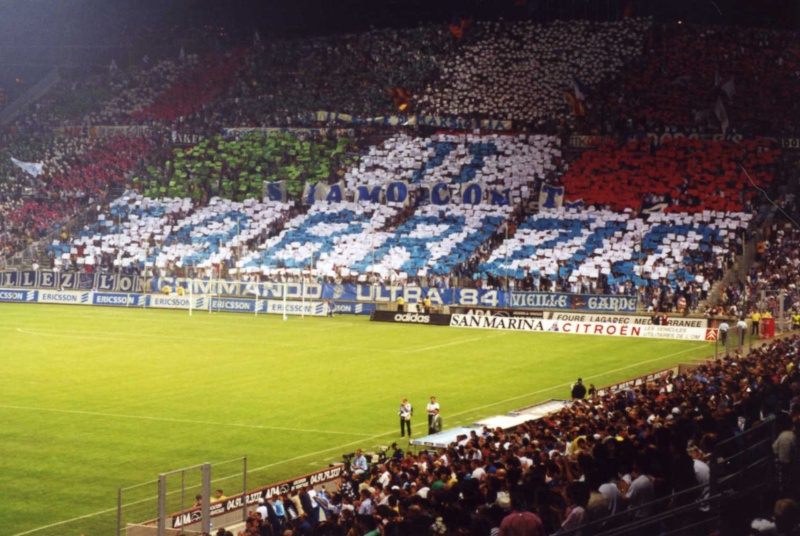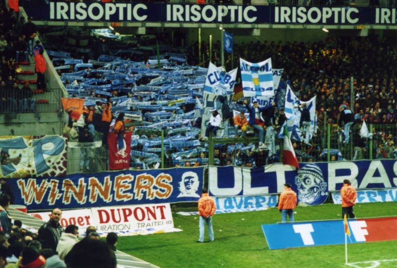 Tifo pour l arrivée au club du joueur italien "RAVANELLI". Tous les groupes en Virage Sud pour ce match pendant les travaux du stade.